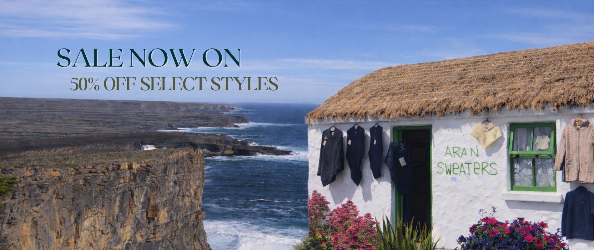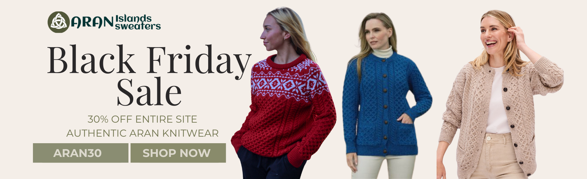 Women's Knitted Sweaters, Aran Cardigans, Irish Shawls & Coats.