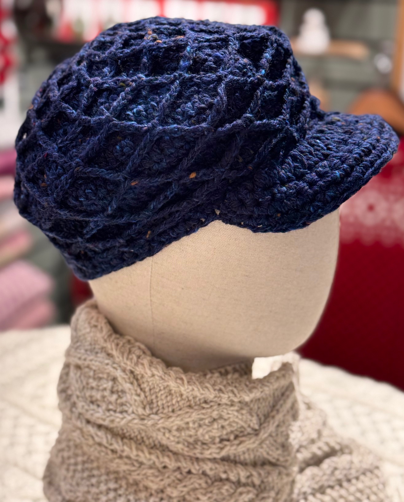 crochet speck hat navy fleck