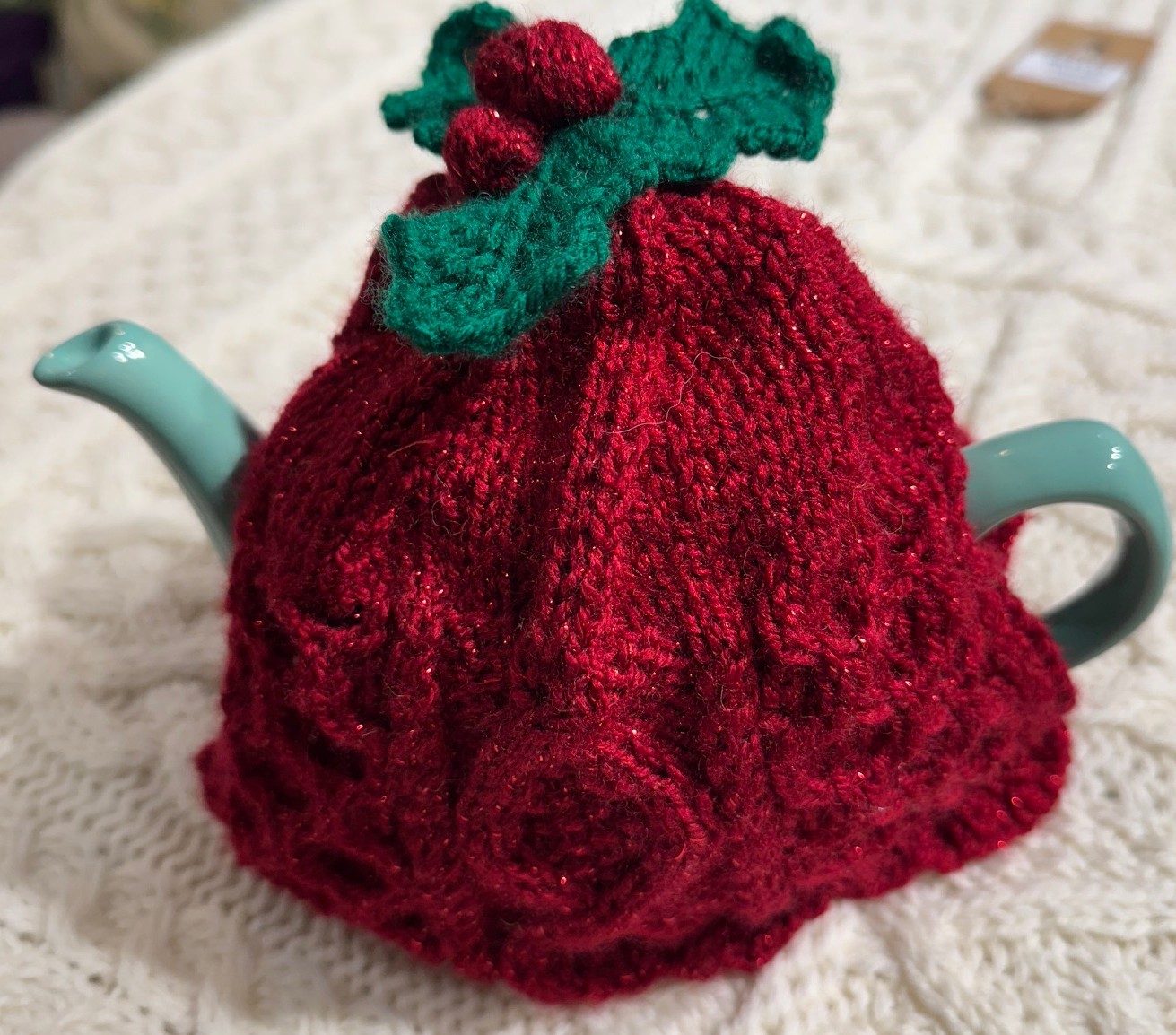 - Hand knitted Christmas theme tea cosy