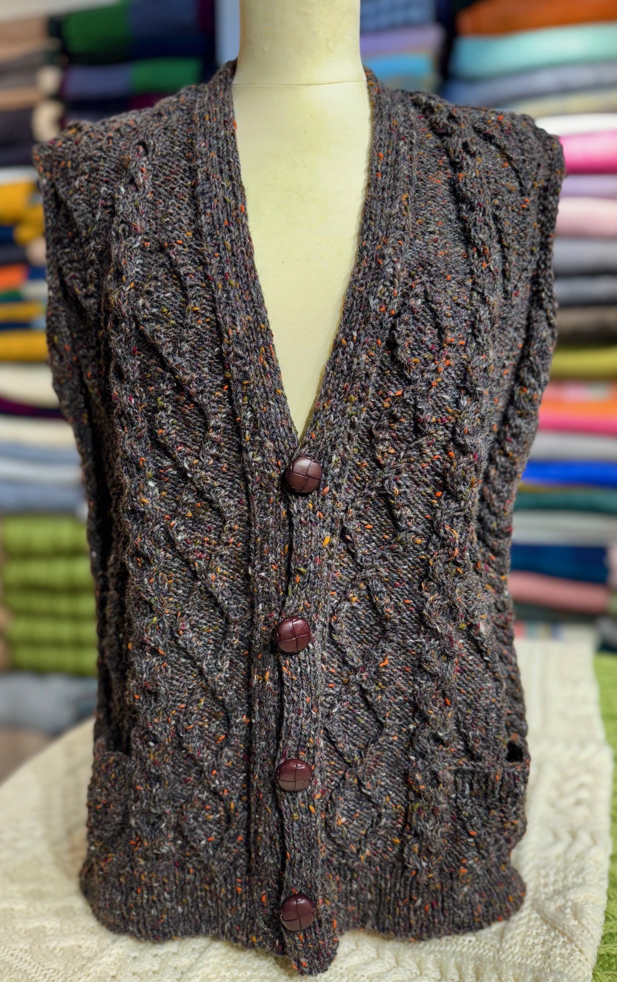 HANDKNIT ARAN BUTTON VEST (HKV51) LARGE